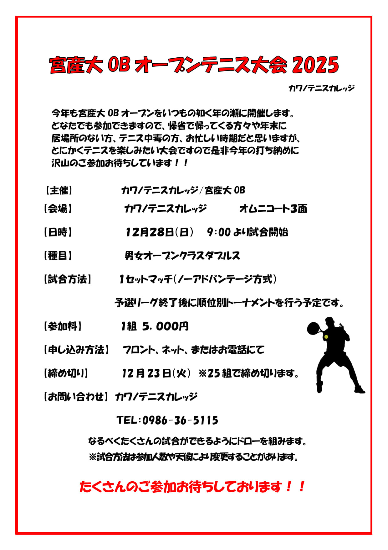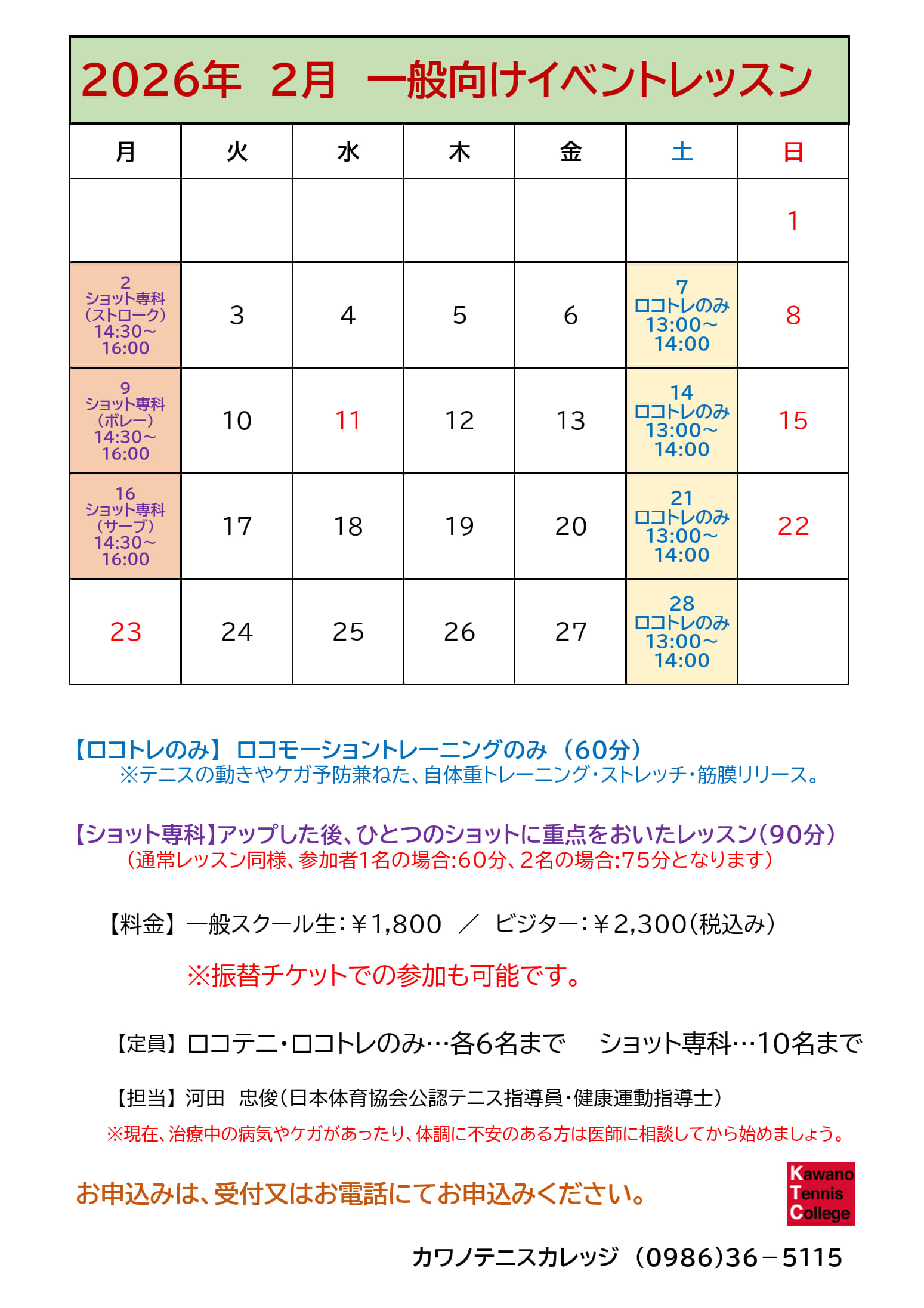 KTC カワノテニスカレッジのホームページへようこそ。